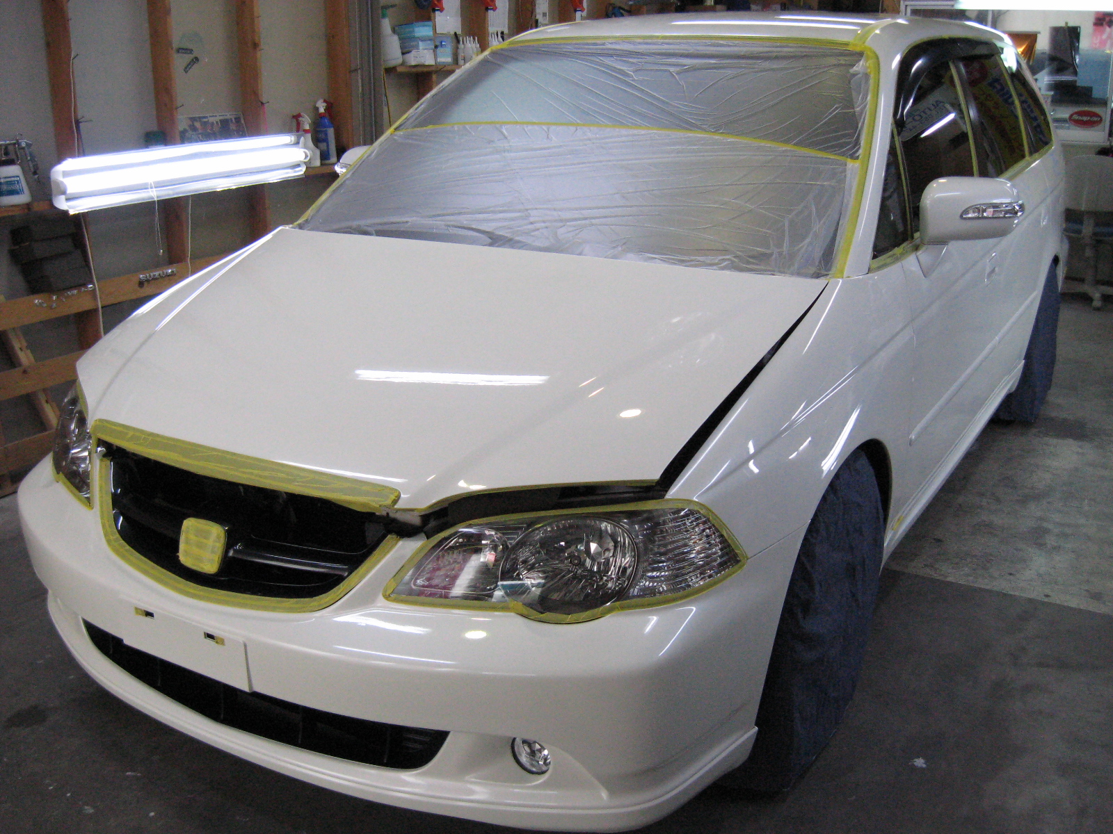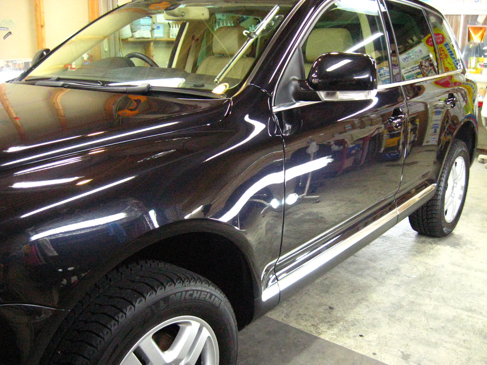 約半年にGT−Cガラスコーティング施工させていただきました。今回は左側面の再施工とメンテナンスの入庫です。左側面を塗装されてから約1ヶ月お待ちいただき再施工となりました。塗装後の再施工は約2週間ほど経ってからでないと、コーティング剤の塗りこみができません。その訳は塗料の溶剤がすこしづつ揮発してきますが完全にぬける期間が約2週間ということです。すぐに塗ってしまうと揮発成分を閉じ込めてしまい塗装にもよくありません。このお車のオーナー様には1ヶ月ほどお待ちいただいたので塗装は十分硬化しております。ボディーのメンテナンスは目立ったキズもほとんどなくオーナー様の愛車への気づかいが窺えます。”いつまでもきれいな車でいるために”永遠のテーマです。ありがとうございました。