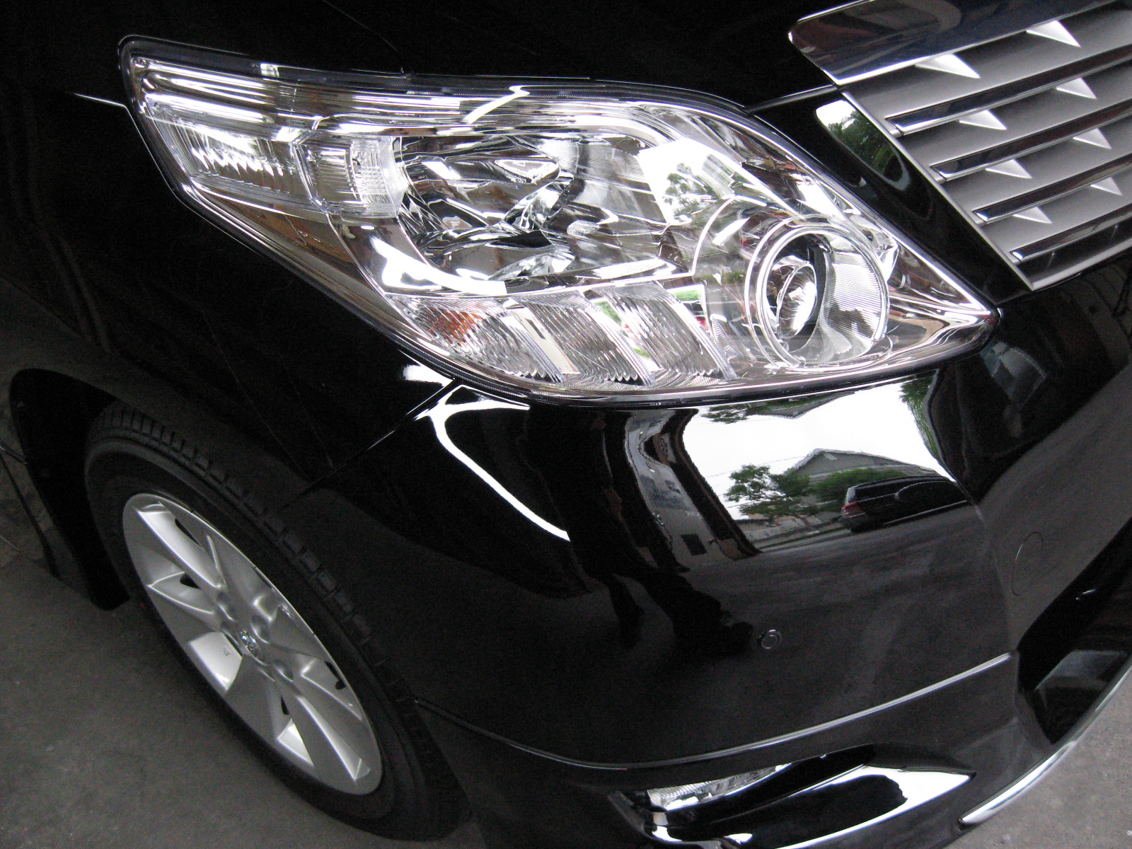国産車の中でもトヨタの塗装が一番いいと言われますが、このアルファード、ブラック202ですが、非常に状態がよく、微細なキズも少なく ”まさにこれが新車”と言う感じです、さらに磨いたことでツヤが増しメタリックカラーにはない深みが出ました。この状態を維持していきましょう!お手伝いさせて頂きます。