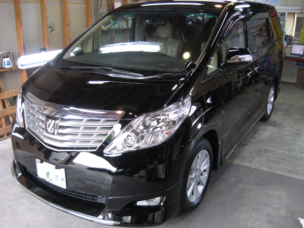 アルファード フィルム施工、ガラスコーティング(GT−C)のご依頼です。新車での入庫となりますが、新車と言えどもやはり下地磨きは欠かせません。