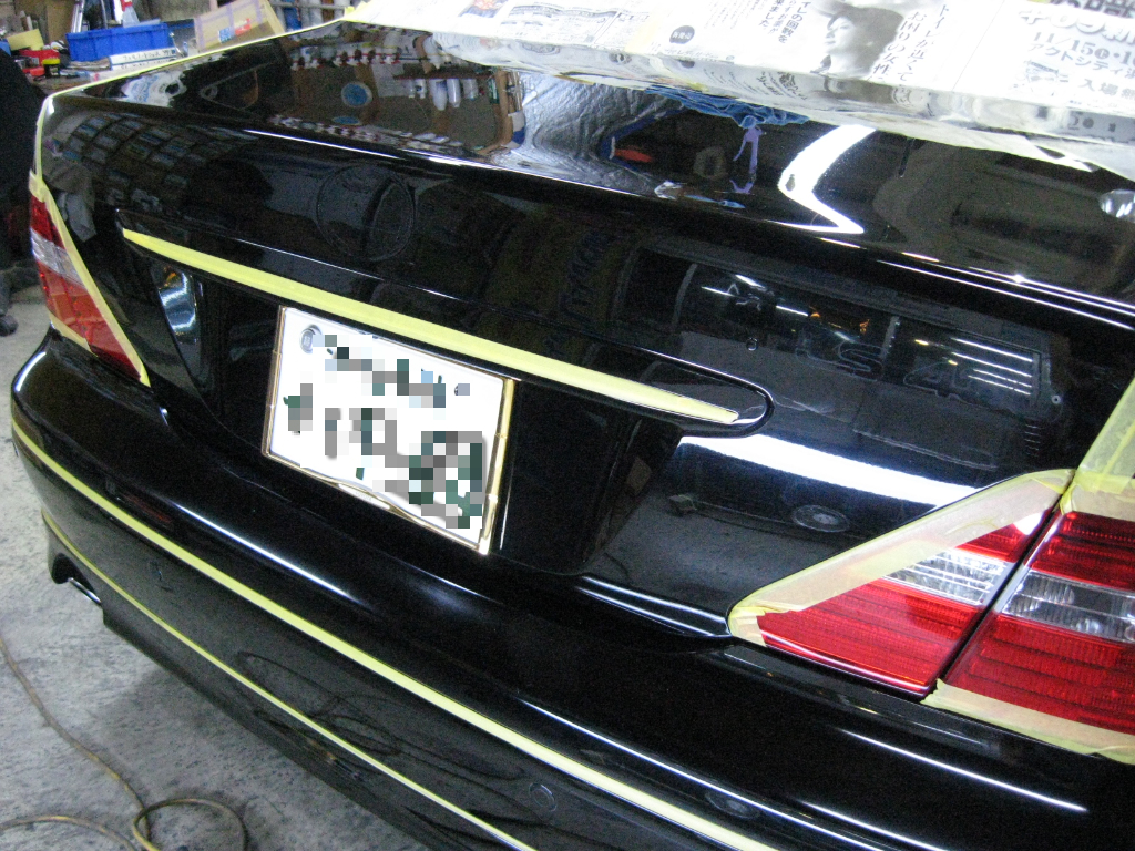 オーナー様のご希望によりフェンダーメッキモールとエンブレムはすべて取り外しての施工となります。