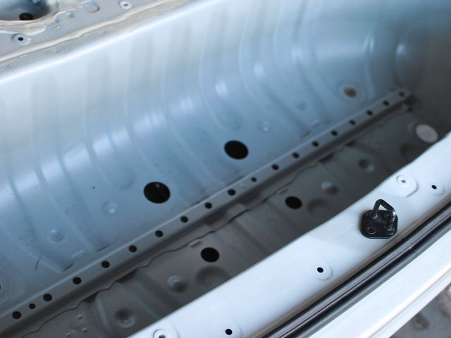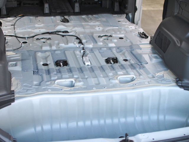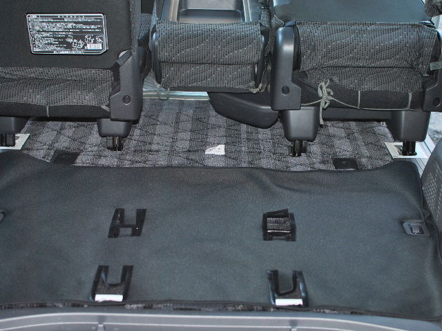 零した場所はバックドア付近から前へ、ほとんどがこのリアポケットに溜まったようですが・・・カーペットをめくっていくと 前へ、前へ、セカンドシートの足元まで流れ込んでおりました。