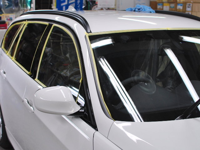 続いて、ガラス撥水コーティング。輸入車はウォータースポットが付着しやすいので、保護するためにも、ガラス撥水、おすすめです!