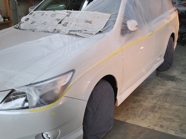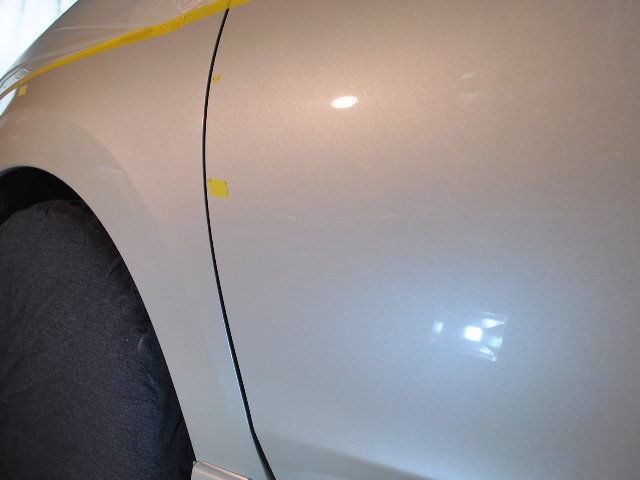 新車だからキレイ、当たり前ですがパール色だけに見逃すこともあるようです、もう一度塗装面やガラス等を点検調整します。ルーフのボディフィルムのノリ残りは必ずと言っていいくらい残っております。