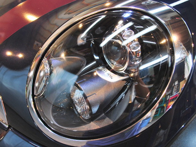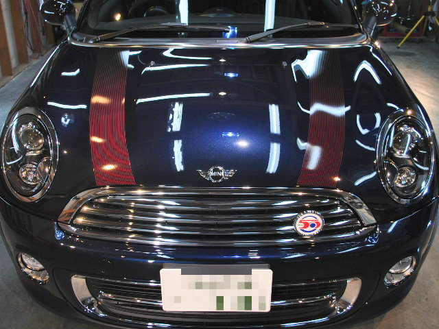 ありがとうございます。このMINIは誕生50周年記念限定モデル、ハンプトン ダークブルーとダークレッドのストライプがとても