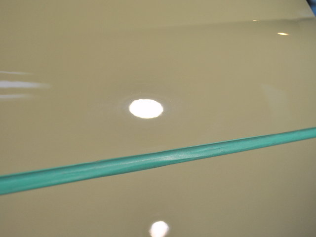 キズがわかりにくいカラーですが照明を当てると磨きキズがよく見えます。極力膜厚を残す磨き方法で調整していきます。