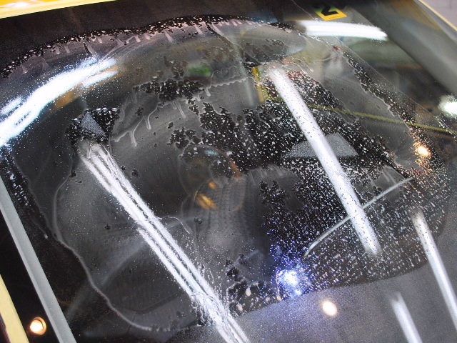 新車のガラスにしては油膜有りすぎ・・・油がのったよう。もしかしてボディWAX・・・ホンダの新車は特に脂っこい・ギラギラ、タイヤWAXもギラギラ、個人的に好きくない・・・下地処理もバッチリやります。