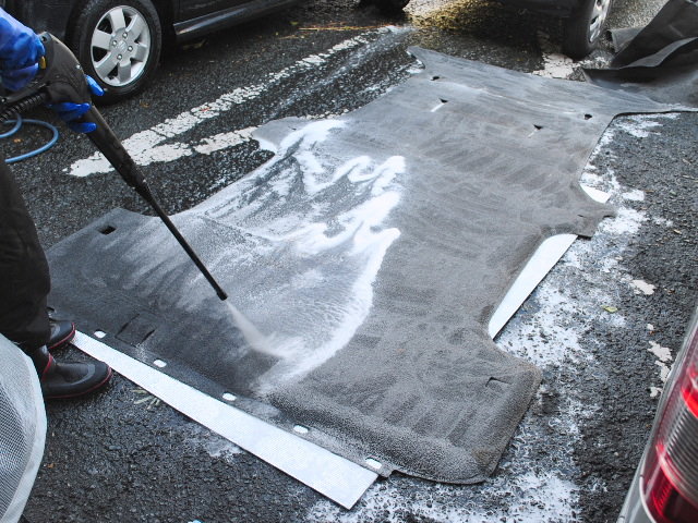 ルーフとカーペットの脱着洗浄はオプションですが、ここまでやると完璧。