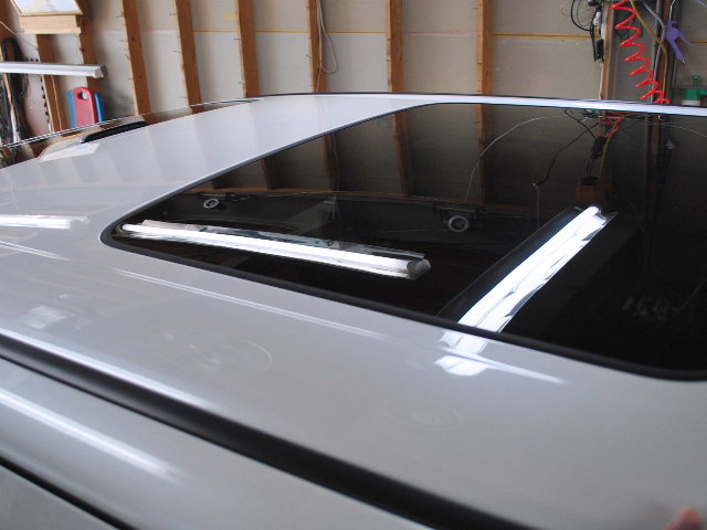 サンルーフ前側にもフィルムを。ガラス撥水コーティングはサンルーフにも忘れずに、ウォータースポットをかなり軽減できます。