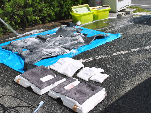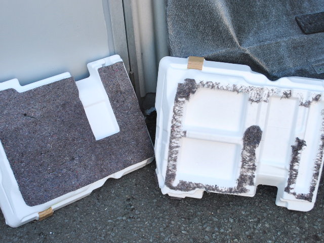 この白い発泡スチロールがRシートの足元になります。こ、これが、ニオイ の元