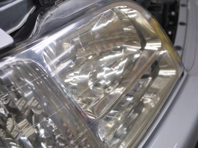 ヘッドライトに使われているポリカーボネート、劣化防止のため表面にハードコート処理をしてありますが意外と耐久性がなく新車でも数年で剥がれてしまいます。紫外線や汚れが主な原因とされていますが、ボディーWAXやアルカリ性の強い水垢取りシャンプーなどもよくありません。溶剤系もNGです。ハードコートが剥がれだすと急速に劣化が進み、黄ばみが発生します。片目だけが酷くなりますがほとんどがもう片側も劣化進行中です。剥がれはライトの上部から始まりますが、それは紫外線のあたる面が違うためでしょう。