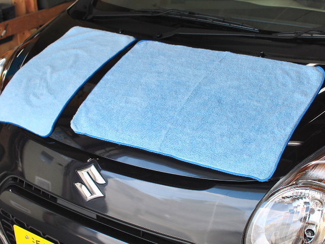 以前紹介した洗車クロス(100×40cm)よりも小さくなりましたが、このくらいが絞りやすく使いやすい。