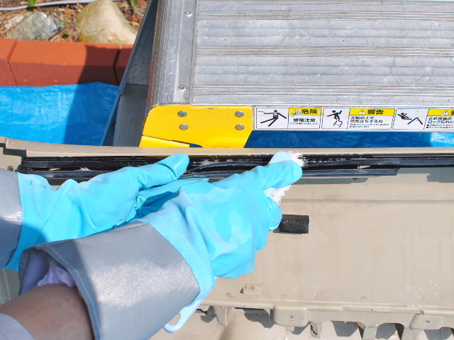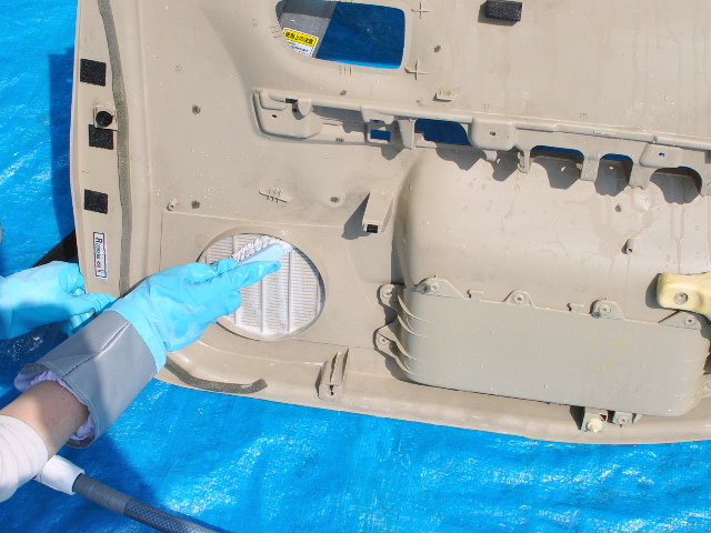 ドア内貼りすき間も洗浄するため細かいパーツもはずします。