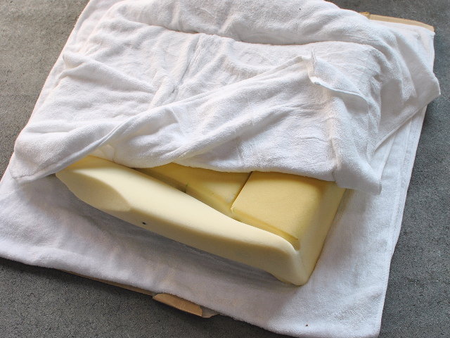 座面のスポンジ、冬場、天日干しだけでは中まで乾くことはなく、水を切った後はタオルドライを繰り返し、強制乾燥。