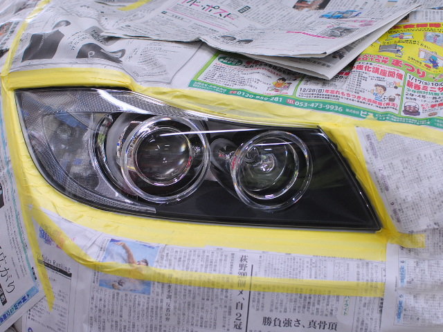 左側は上部にハードコートの剥がれがありサンディングから・・・輸入車は国産車に比べハードコートが固め・・・時間掛かります。