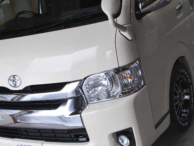 フラッシャーレンズは劣化状態が少ないためサンディングはせず、バフ磨きで対応します。ハードコートをなるべく残します。