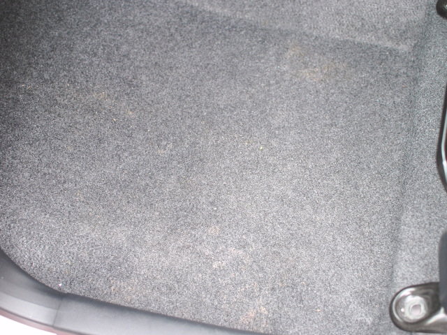 助手席の足元フロアーにジュース、イチゴオレをこぼしたようです。確認すると、かなり甘い匂いが・・・画像だとわかりませんが白く染み込んでおります。こぼした量も少量ではないということで