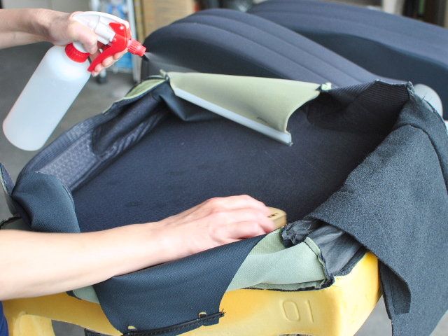 オーナー様自ら消臭剤で試みたがやはり消えず当店へ。かなりニオイは強いです。シートのスポンジ部分に染み込んでおりますので丸洗いでのクリーニングを希望されました。