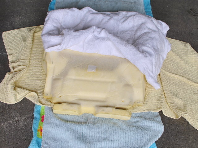 ウレタン部分の水を抜くためのタオルドライ。この作業をしないと天日干しだけではいつまでも水は抜けません。