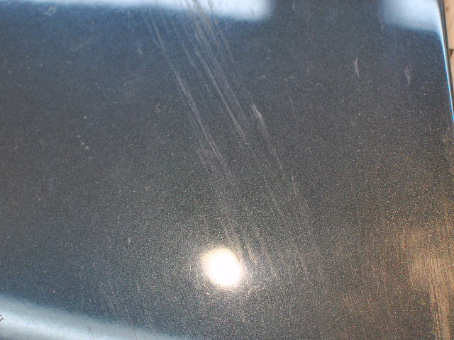 比較的浅目のキズ。キズの種類も千差万別、細くて深いものから太くても浅いものまで、キズを消すにはキズの深さまで削ること当然のことですが削った分塗装は弱くなりますその見極めが大切です