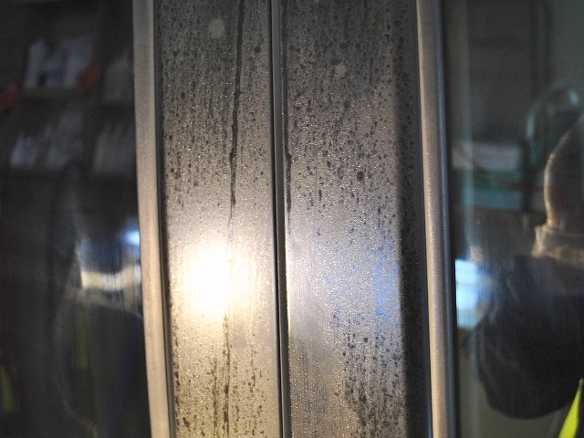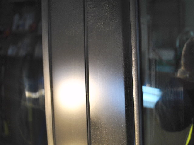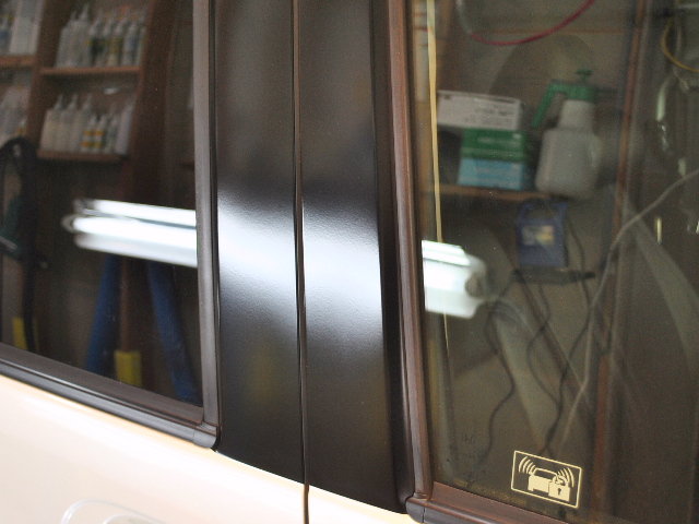 こちらはドアのピラー部分この部分は塗装ではなく艶消しのテープが貼ってあります。ここもバイザーからの雨だれ汚れが目立つところでもあります。ドライ状態では確認できませんが、濡れたクロスでふきあげると浮き上がってきます。