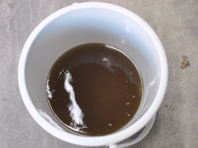 どのくらい経過しているのか分かりませんが樹液はすでに接着剤のように硬化しクリアー層に達しています。木を切るか、カバーするか、まめに除去するかしないといけません。