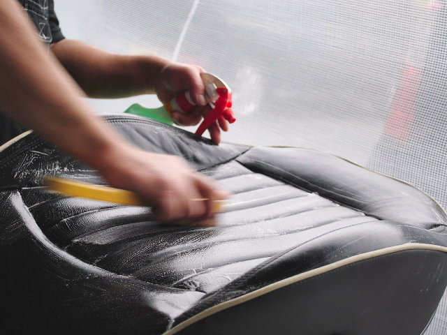 レザーシート、汚れが目立たないカラーですが、実は結構汚れております。特に革のシボ、縫い目は汚れが溜まりやすいので念入りに。