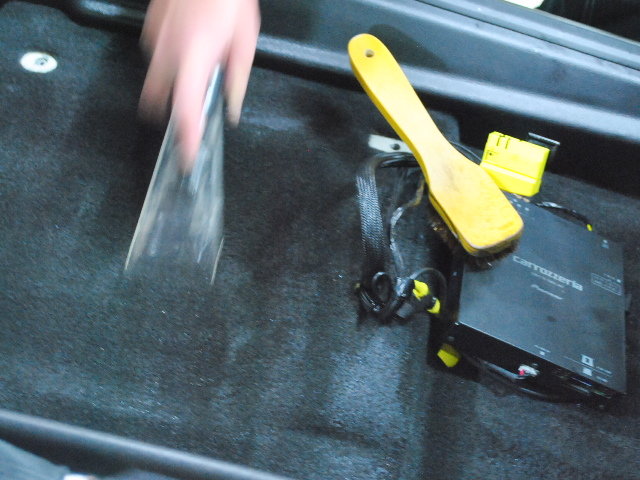 カーペット部リンサー(すすぎ洗い)、シート下部も汚れを確認しながら・・・