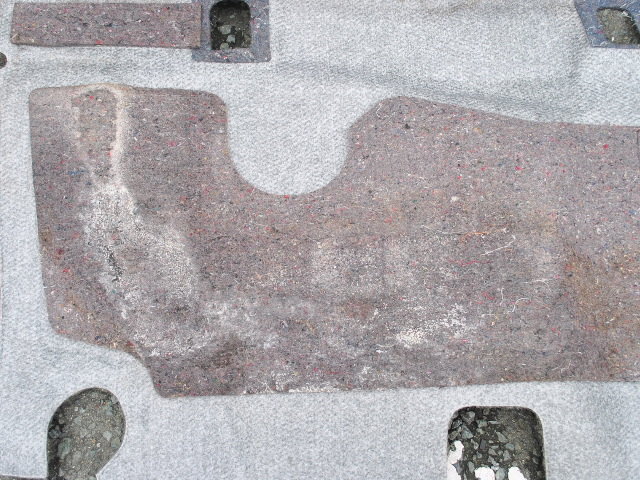 カーペットを取り外すとやはりニオイの原因が・・・カーペット裏のフエルトが・・・