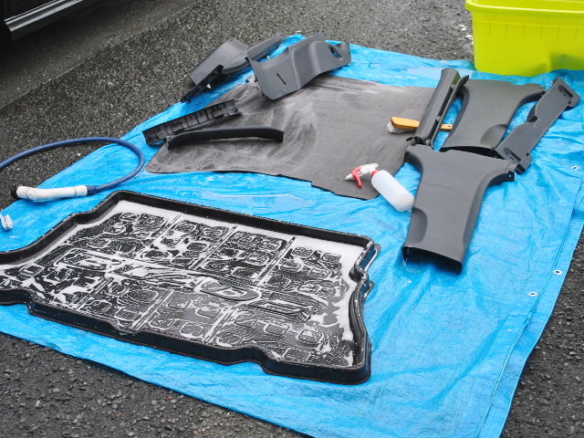 取り外したパーツ類もよく洗浄。ニオイが移りますので・・・