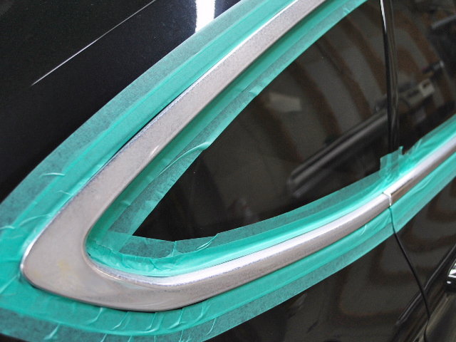 ボディ、メッキモール、ヘッドライトと、このクラスには欠かせない施工内容です。ある意味セットでもありますまずはメッキモールから